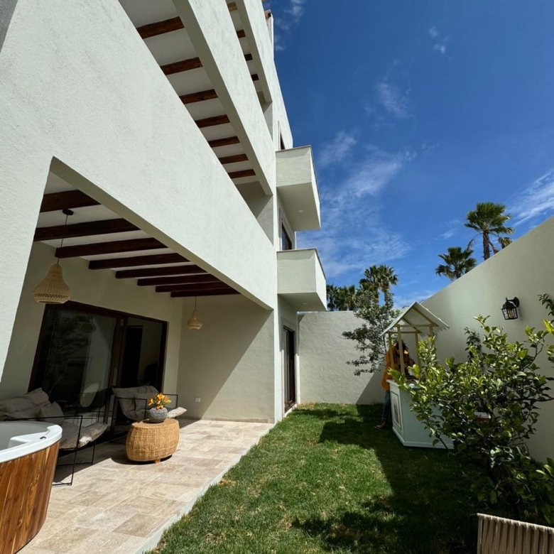 Cada departamento cuenta con jacuzzi privado, cuatro unidades de aire acondicionado y estacionamiento designado. Las unidades de la planta baja incluyen un patio trasero privado y una bodega, ideales para estancias largas o de temporada. Las unidades del segundo piso destacan por sus cuatro balcones, uno en cada recámara y uno más grande donde se encuentra el jacuzzi, perfectos para relajarse y disfrutar de las vistas.