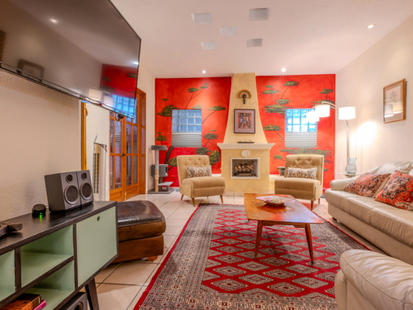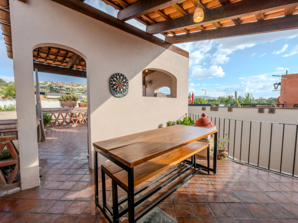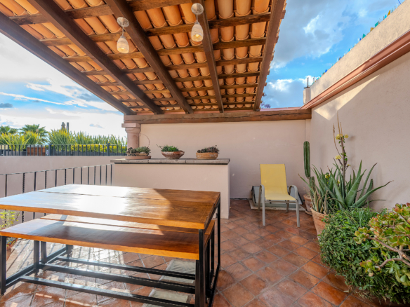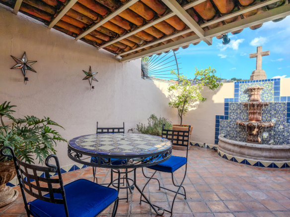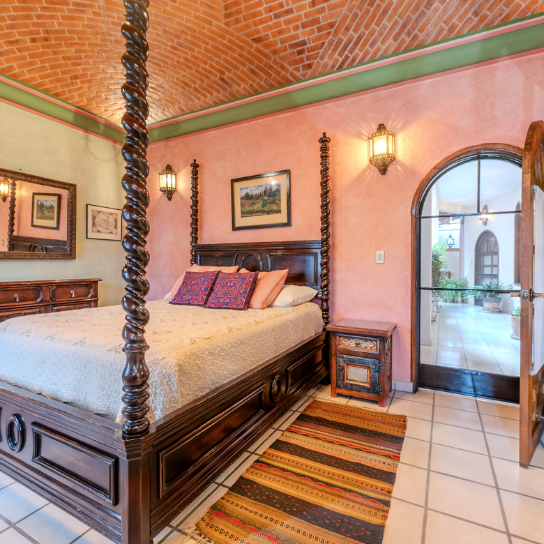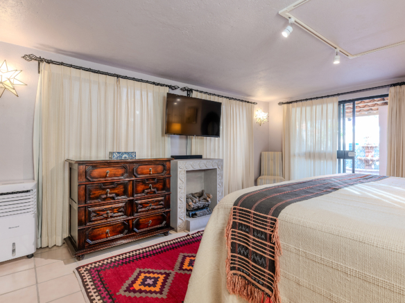 Crafted with the art of hospitality in mind, the residence moves with an effortless rhythm. Outdoor lounging blends seamlessly into formal indoor spaces, all connected by the traditional portales that wind through the home’s three levels. Each turn, each transition, feels intentional—like walking through a story written in warm textures and timeless materials.