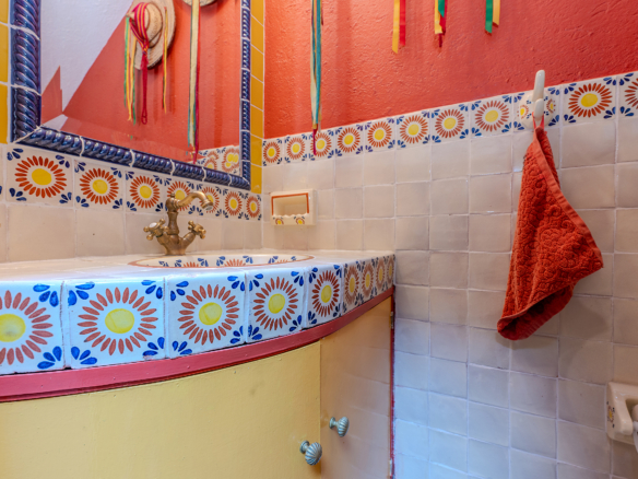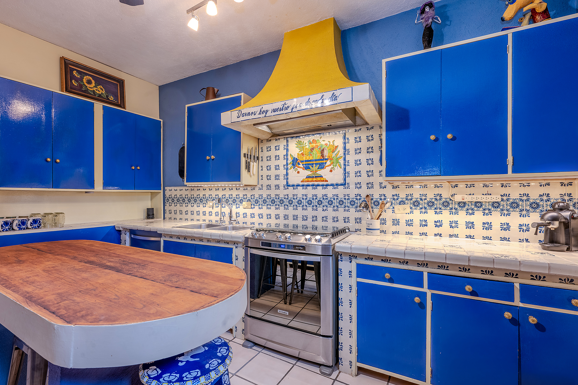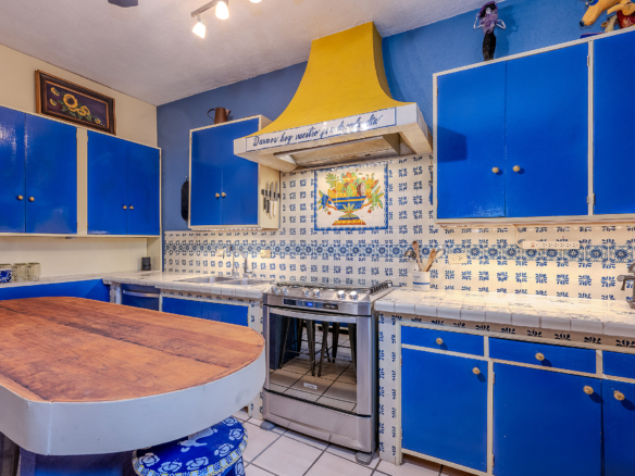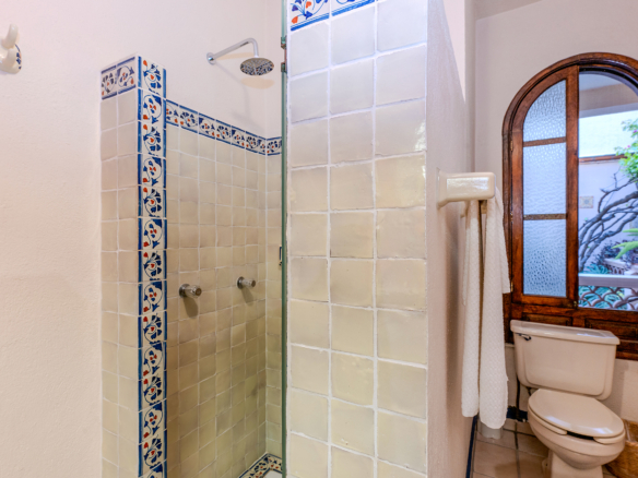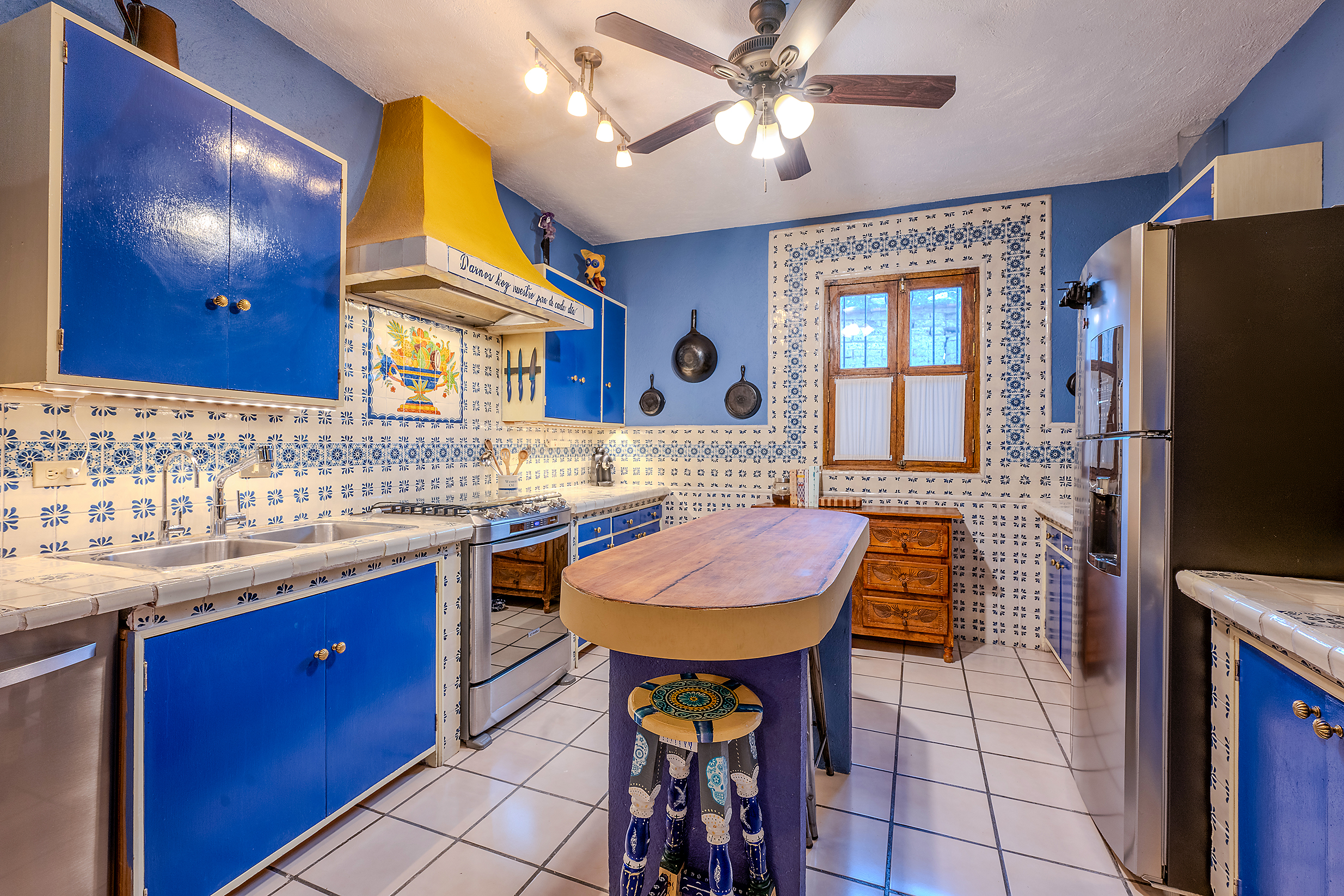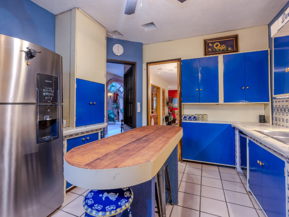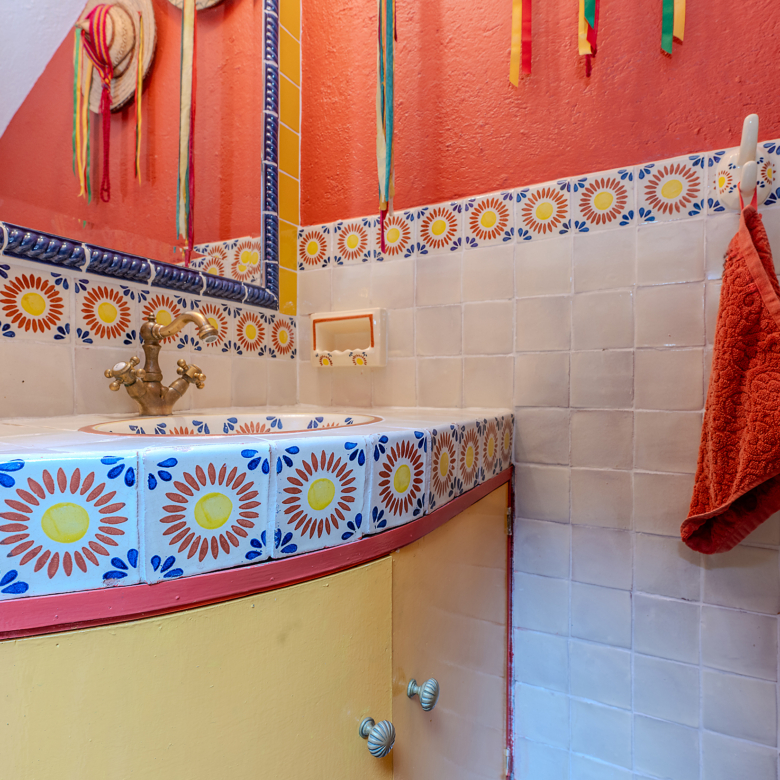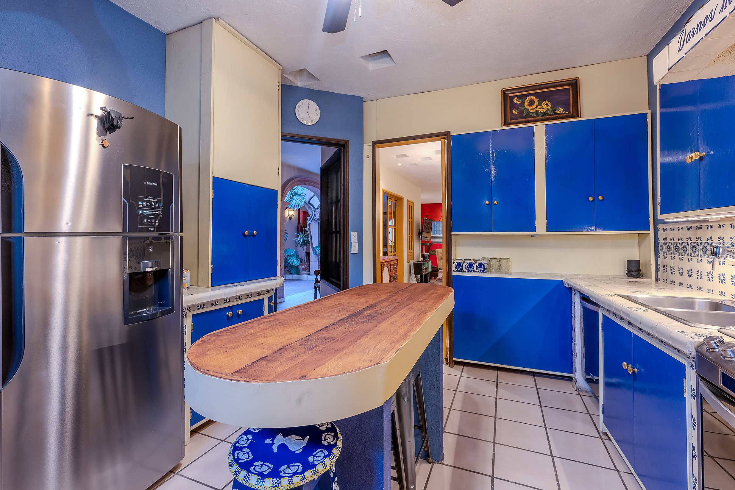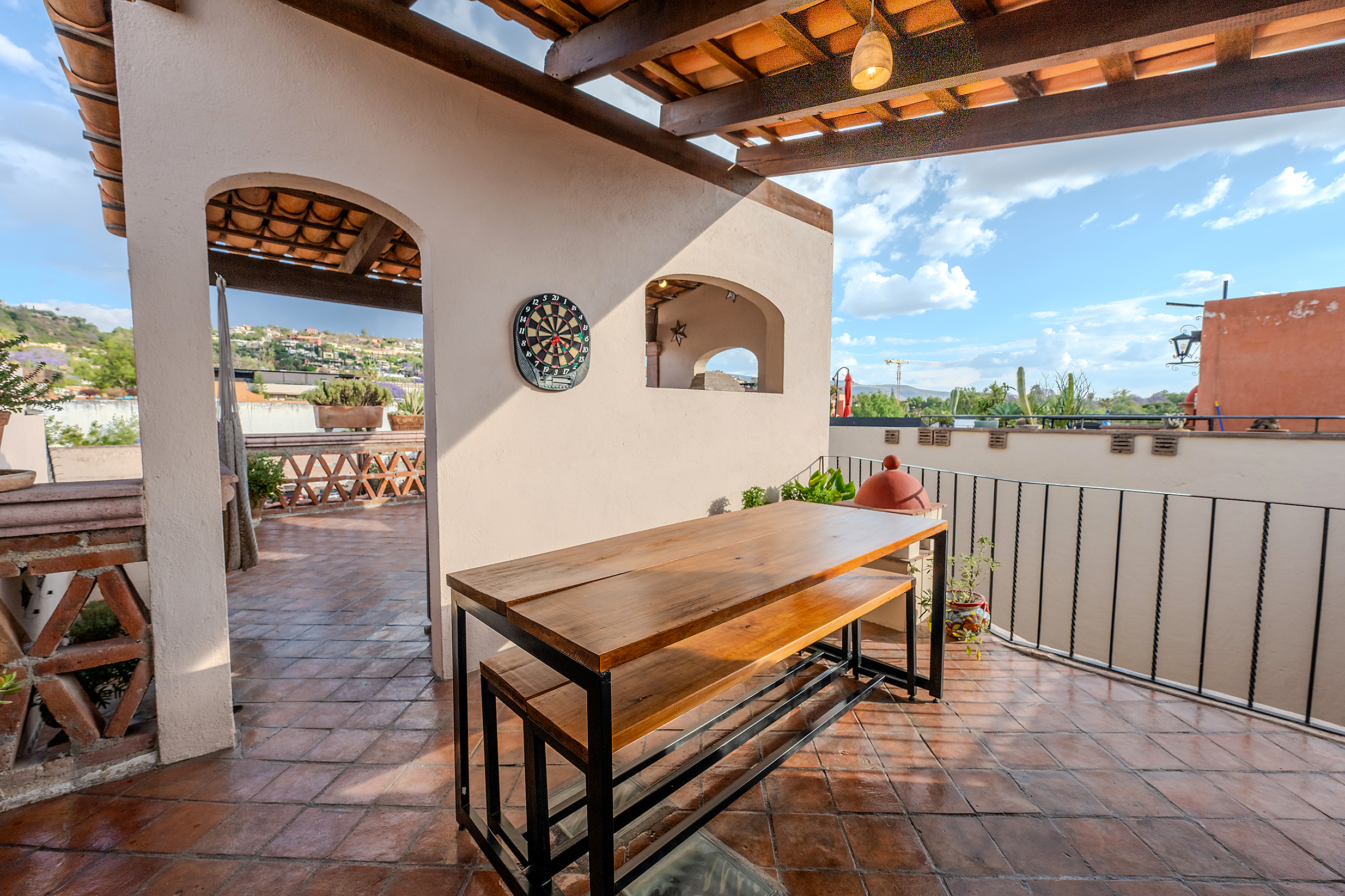 The kitchen is the heart of this narrative, glowing with classic cream-and-blue tile that speaks to San Miguel’s heritage. Its charm is enhanced by thoughtful modern upgrades in stainless steel, creating a space that feels at once nostalgic and inspiring. And when it’s time to entertain on the rooftop, a discreet “vertical waiter” delivers dishes and drinks with elegant ease. Up above, the outdoor kitchen becomes a stage for unforgettable evenings, with La Parroquia rising in the distance like a living painting.