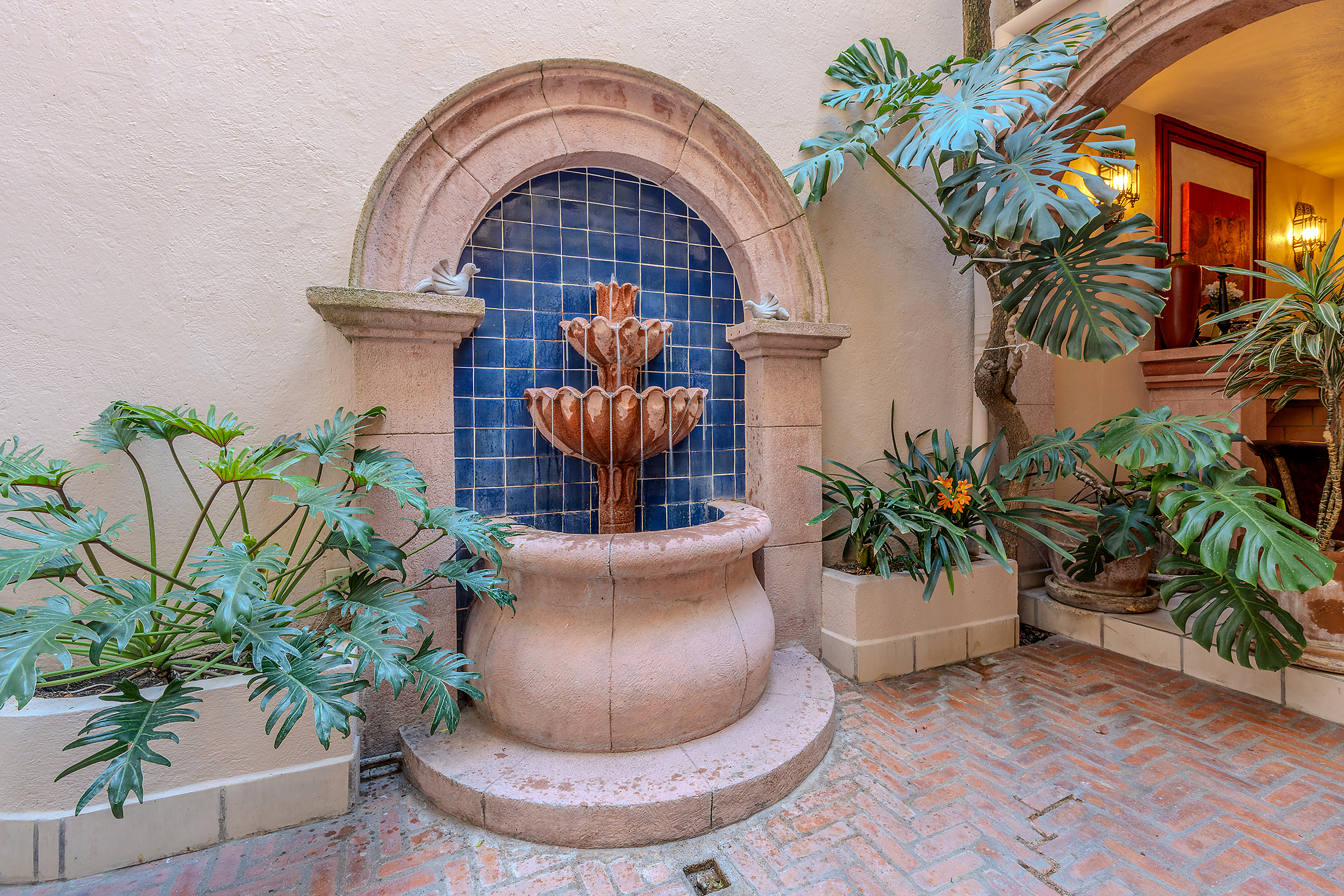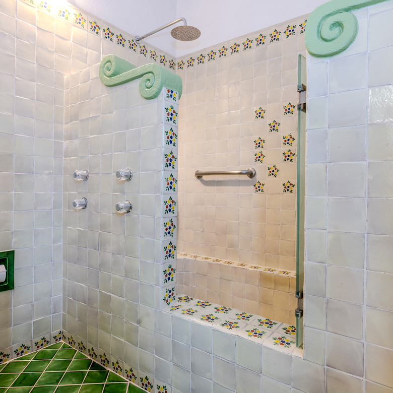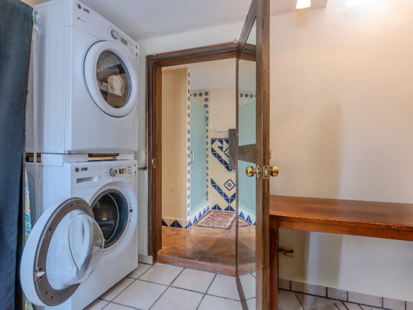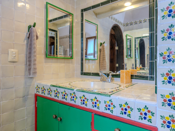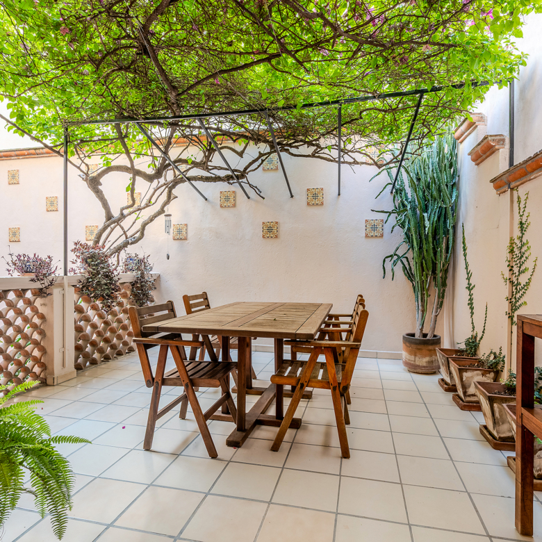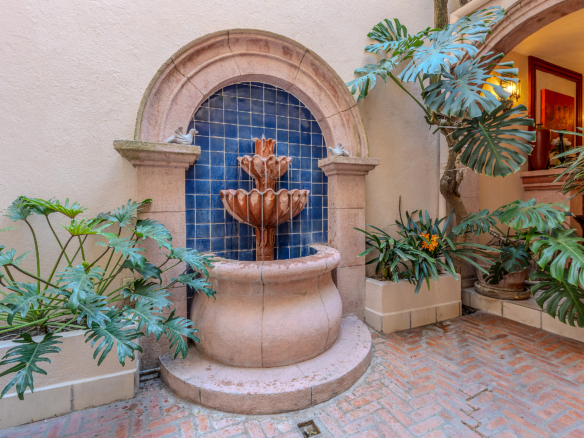 Dining al fresco here is not an occasional treat—it’s a lifestyle, elevated on all four sides of the home. On the ground level, mature greenery wraps the courtyard in privacy. On the second level, a vine-draped trellis frames an intimate table for six outside the Plata Bedroom’s French doors. On the third floor, the Lavender Bedroom opens to a private perch where meals are accompanied by sky and silence. And crowning it all, the shaded rooftop dining room—finished in traditional red clay tile—offers a generous table for gathering friends as the evening sky glows with the Rosewood fireworks.